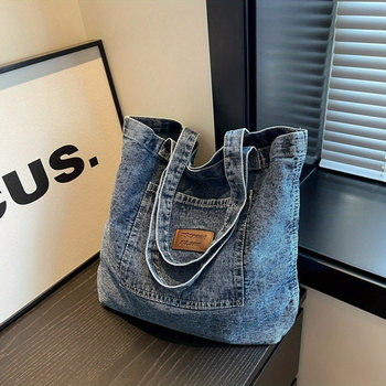 Large Capacity Denim Solid Handbag Clutch Bag Simple Handbag Wholesale Customized Denim Tote Bag